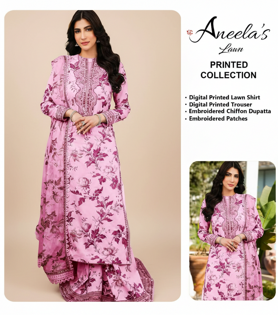 👑 Aneela’s Lawn 3PC Hit Code – Luxury Embroidered & Printed Unstitched Suit 👑