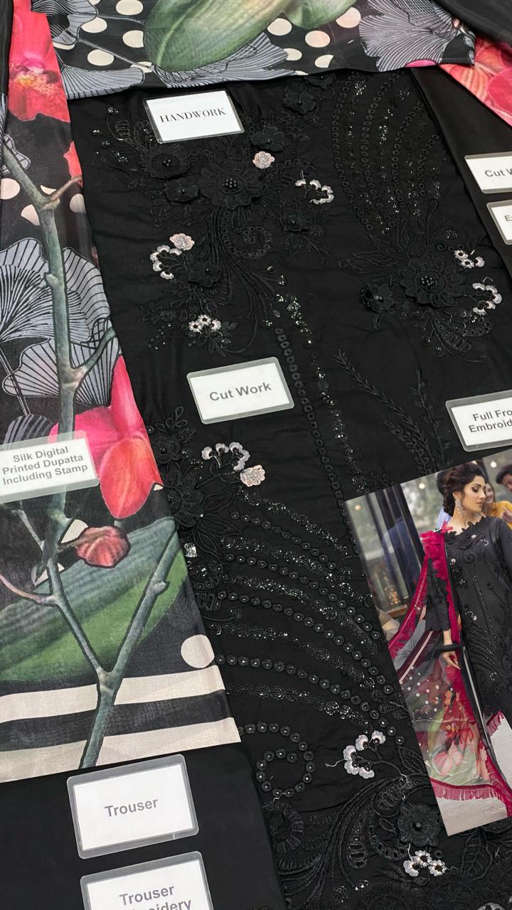 MARIA B Heavy Embroidered Front With Handwork & Stone Work WITH Heavy 3D flower Attach With Stone Punch