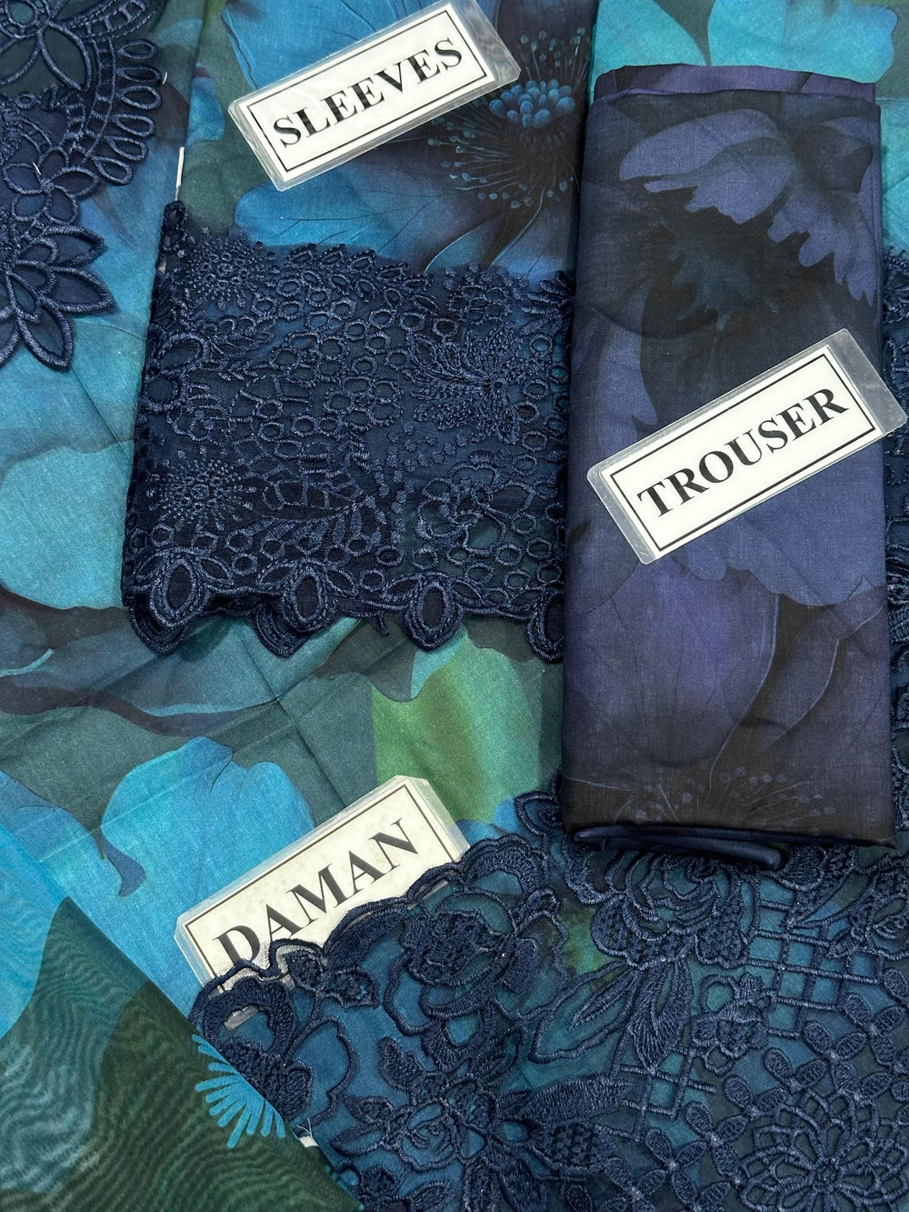 Sapphire Printed Lawn Front & Back | Lawn Sleeves | Neck Embroidered Patch