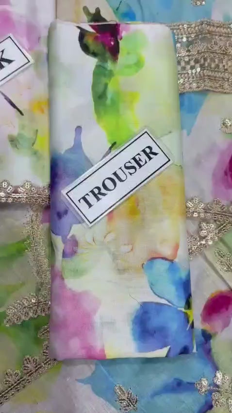 Premium Organza Suit 🌸 | Net Dupatta & Silk Trouser